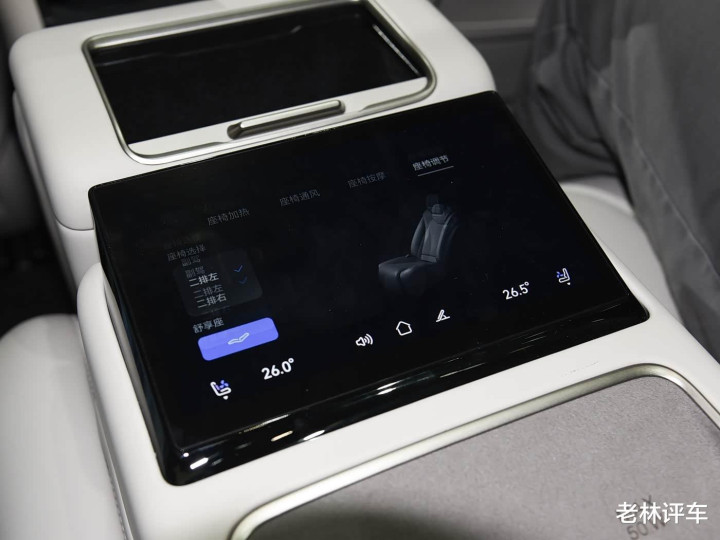 11、顶配和次顶配车型的前后排座椅齐相沿加热/透风/推拿功能,前后排座椅齐相沿腿托转念,后排座椅相沿前后转念和靠背转念,后排还配备了一块7.9英寸的规则屏幕。