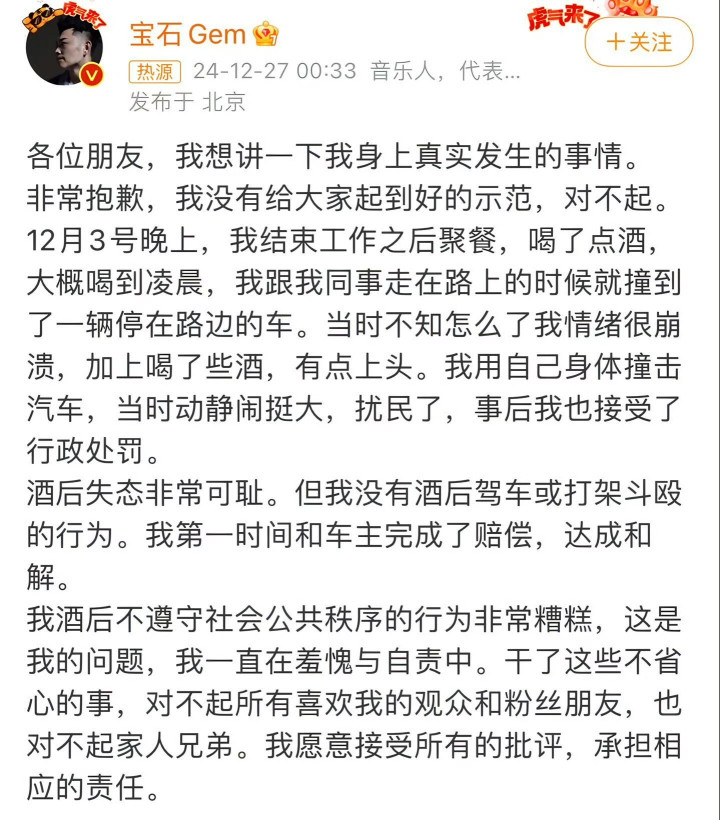 事件的源流要追念到老舅在上海聚餐后醉酒心绪失控,用躯壳撞击路边车辆并打扰内行步骤,被警方以“挑衅闯祸”行政拘留7日。尽管他过后赶紧发文谈歉并抵偿车主,但这一转为仍对其公众形象酿成重创,不仅缺席《五哈》第五季全程录制,更被贴上“风险艺东谈主”的标签。节目组其时明确暗示,他需要“千里淀反省”,而这一年的缺席,也成为他自我修正的缓冲期。从音乐节试水到马年春晚小年夜晚会的回想,再到如今《五哈》的镜头前谈歉,老舅的每一步复出皆伴跟着公众的注释与期待。