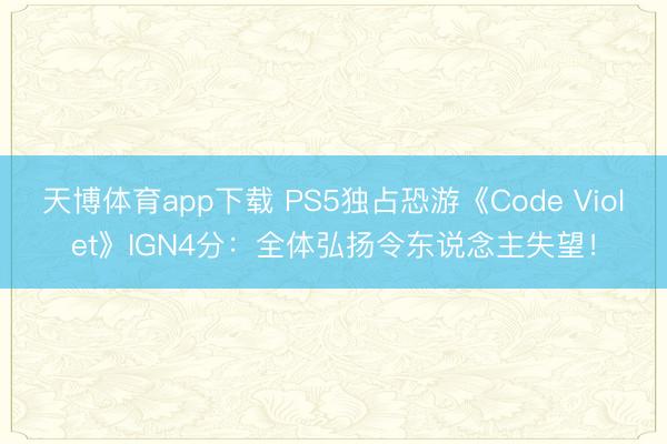 天博体育app下载 PS5独占恐游《Code Violet》IGN4分:全体弘扬令东说念主失望!