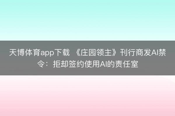 天博体育app下载 《庄园领主》刊行商发AI禁令:拒却签约使用AI的责任室