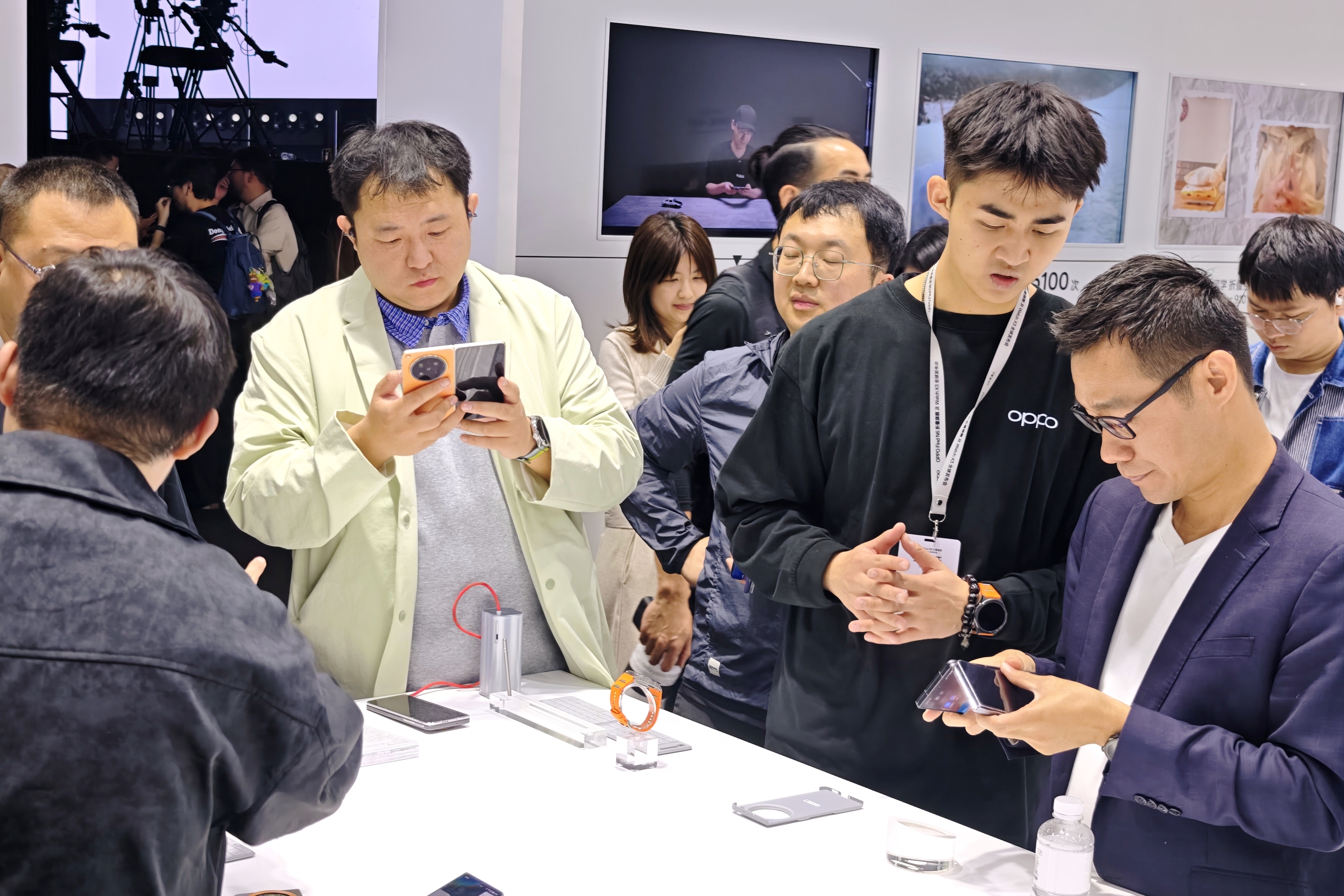 在发布会场旁的居品展示区,南边+记者现场看到,与以往的折叠屏手机比较,现场展出的Find N6手机不论怎样开合使用,伸开后果真简直看不到折痕。据发布会先容,Find N6给与了两项新时间,离别是“新一代钛合金苍穹搭钮”与“苍穹驰念玻璃”。