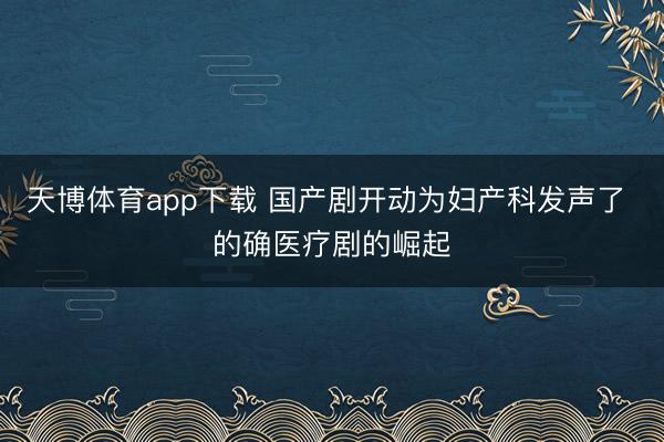 天博体育app下载 国产剧开动为妇产科发声了 的确医疗剧的崛起