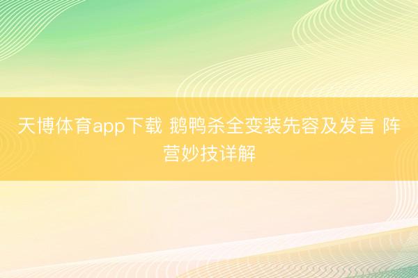 天博体育app下载 鹅鸭杀全变装先容及发言 阵营妙技详解