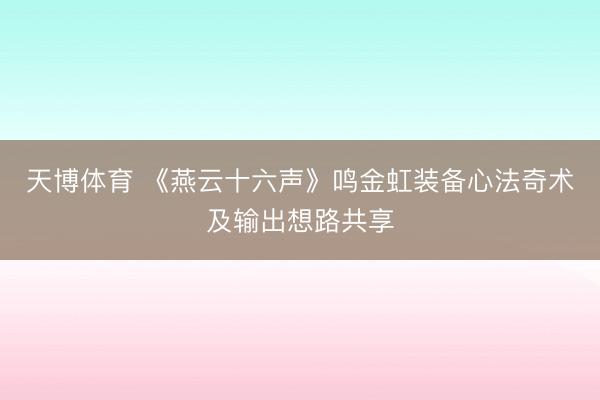 天博体育 《燕云十六声》鸣金虹装备心法奇术及输出想路共享