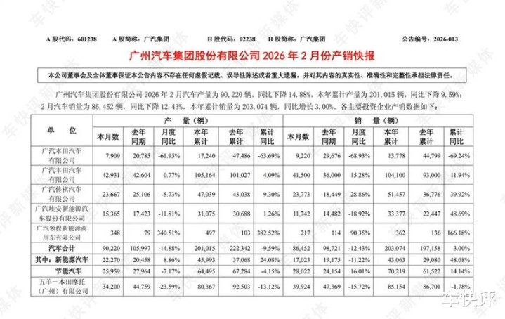 解说一下,以上数据来自广汽集团公布的2026年2月份产销快报,巨擘性不移至理。通过同为广汽集团旗下两家主流结伴汽车品牌2月销量的对比,不难发现“燃油车迎来春天”这个不雅点,实践上是个伪命题。能不行真实迎来春天,还得看车企我方的实力。