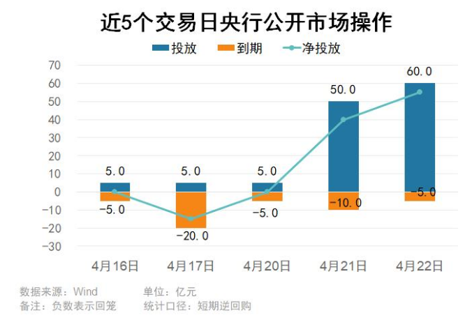 【群众网财经轮廓报说念】据香港万得通信社报说念,4月22日,央行以固定利率、数目招标神志开展了60亿元7天期逆回购操作,全额餍足了一级来往商需求,操作利率1.40%,投标量60亿元,中标量60亿元。当日5亿元逆回购到期,据此计较,单日净投放55亿元。