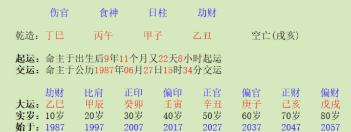 比如男命“丁巳丙午甲子乙丑”,日支跟时支、月支合冲并肩,就会如斯。