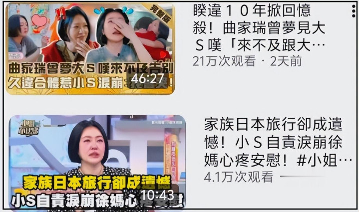 最近几期节目,小S谈及姐姐大S时数次崩溃。节目组将抽泣画面行动封面,被质疑“耗尽骸骨”。但淌若你看过完整节目,会发现那是她初次公开分解那场“临了旅行”的自责。