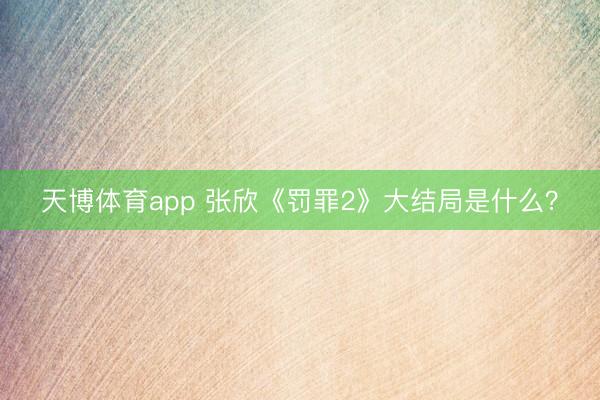 天博体育app 张欣《罚罪2》大结局是什么?